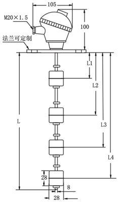 连杆浮球液位开关为订制品,为方便使用者正确选购,特别将各种法兰、牙口、接线盒规格、材质特性、浮球规格,组合成各种规格的标准型,使用者选购前只要先确认法兰或牙口规格,就一定可以安装,接着只需在目录图形上小方框内填写控制位置尺寸L1-L2(不需要的不用填写)总长度L,再填入动作点形式为常闭(NC)或常开(NO),最后修改图形下方料号的最后第五码为所需的浮球数即可。